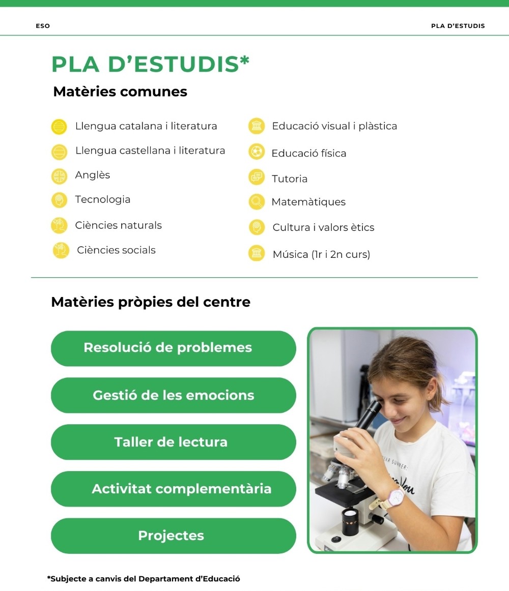 *subjecte a canvis del currículum per part del Departament d’Ensenyament de la Generalitat de Catalunya.