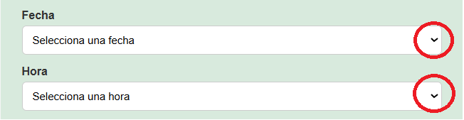 Verá campos desplegables. Haz clic para elegir la fecha y la franja horaria que prefieras.
