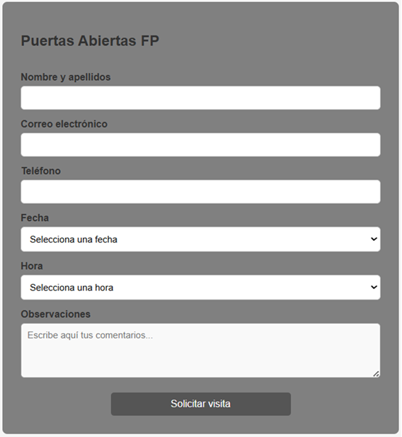 1.- Accedeix al nostre portal de visites, on trobaràs el formulari de sol·licitud.